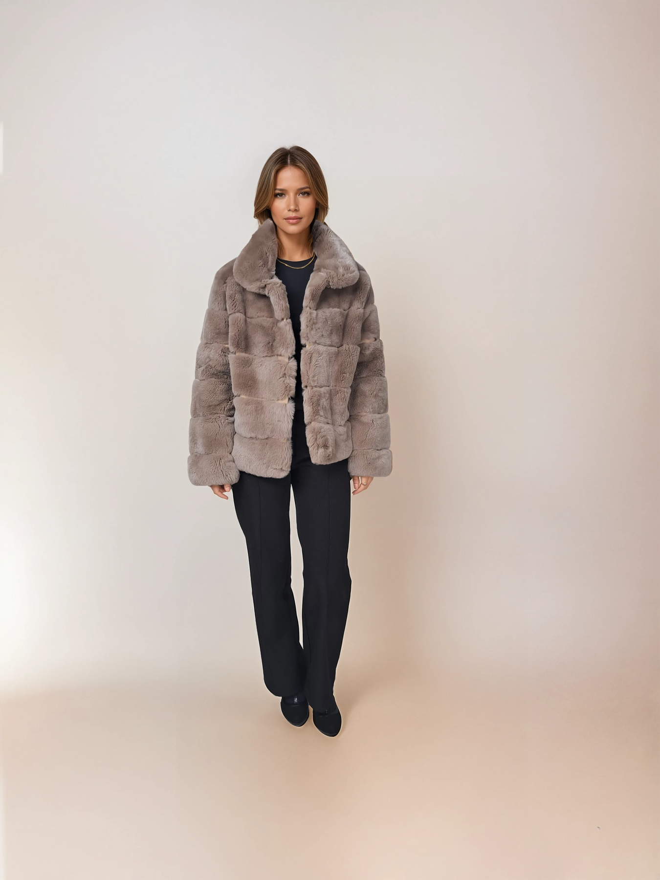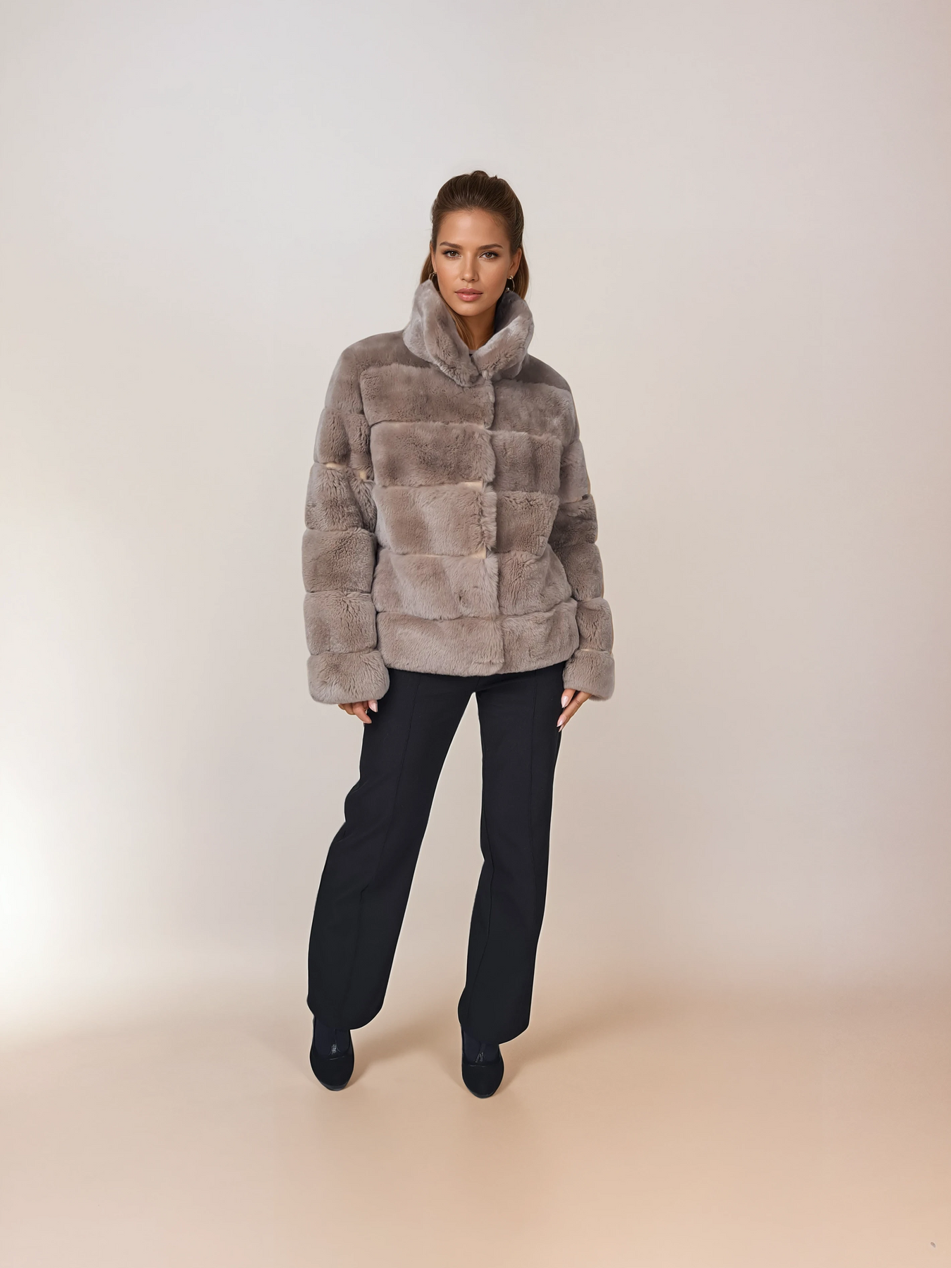 Werten Sie Ihren Winterstil mit dem Petrovski Collar Rex Coat auf – Wärme trifft auf Mode in einem wunderschön gefertigten Stück, das mühelos klassische, sportliche und extravagante Elemente vereint.