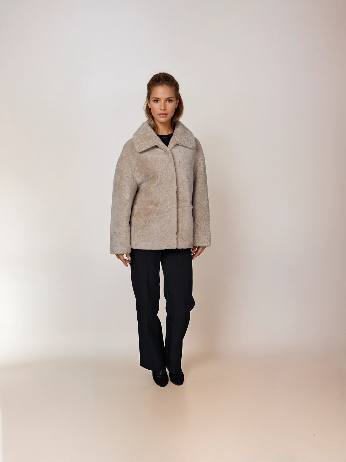 Irene embodies understated elegance with a luxurious curly lamb collar that frames the face with natural texture and warmth. This 65 cm jacket strikes a refined balance between contemporary design and timeless appeal, crafted for the discerning woman who values quality craftsmanship. The soft, tactile lamb creates an inviting focal point while the dark beige palette ensures versatile styling across seasons. A sophisticated piece that elevates everyday wear with subtle luxury.