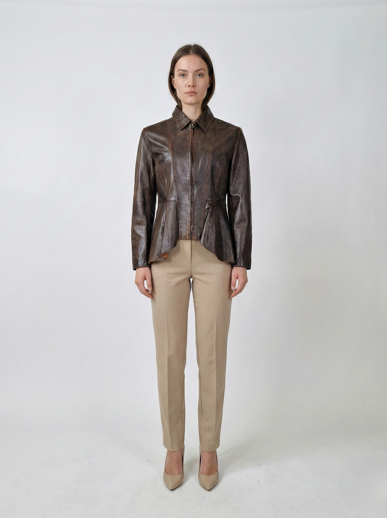 Camilla is a refined lamb leather jacket designed by Levinsky, crafted for women who appreciate timeless luxury. The generous A-line skirt provides elegant movement and a flattering silhouette, while the polyester lining ensures comfort and durability through everyday wear. In rich royal brown, this 65 cm jacket is a versatile wardrobe essential that effortlessly elevates any outfit with understated sophistication.