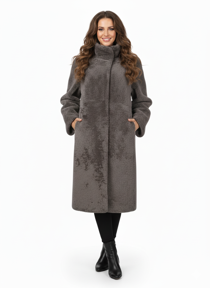Introducing Filuka, a luxurious curly Lamb jacket designed for women. This elegant piece boasts a length of 100 cm, adorned in a rich taupe hue. The jacket is not only stylish but also offers practicality with two zips on either side, allowing for a customizable fit. The inner tunnel waist enhances your silhouette, providing a flattering and chic look. Elevate your style and confidence with this sophisticated Filuka jacket, ensuring you both look and feel your best.
