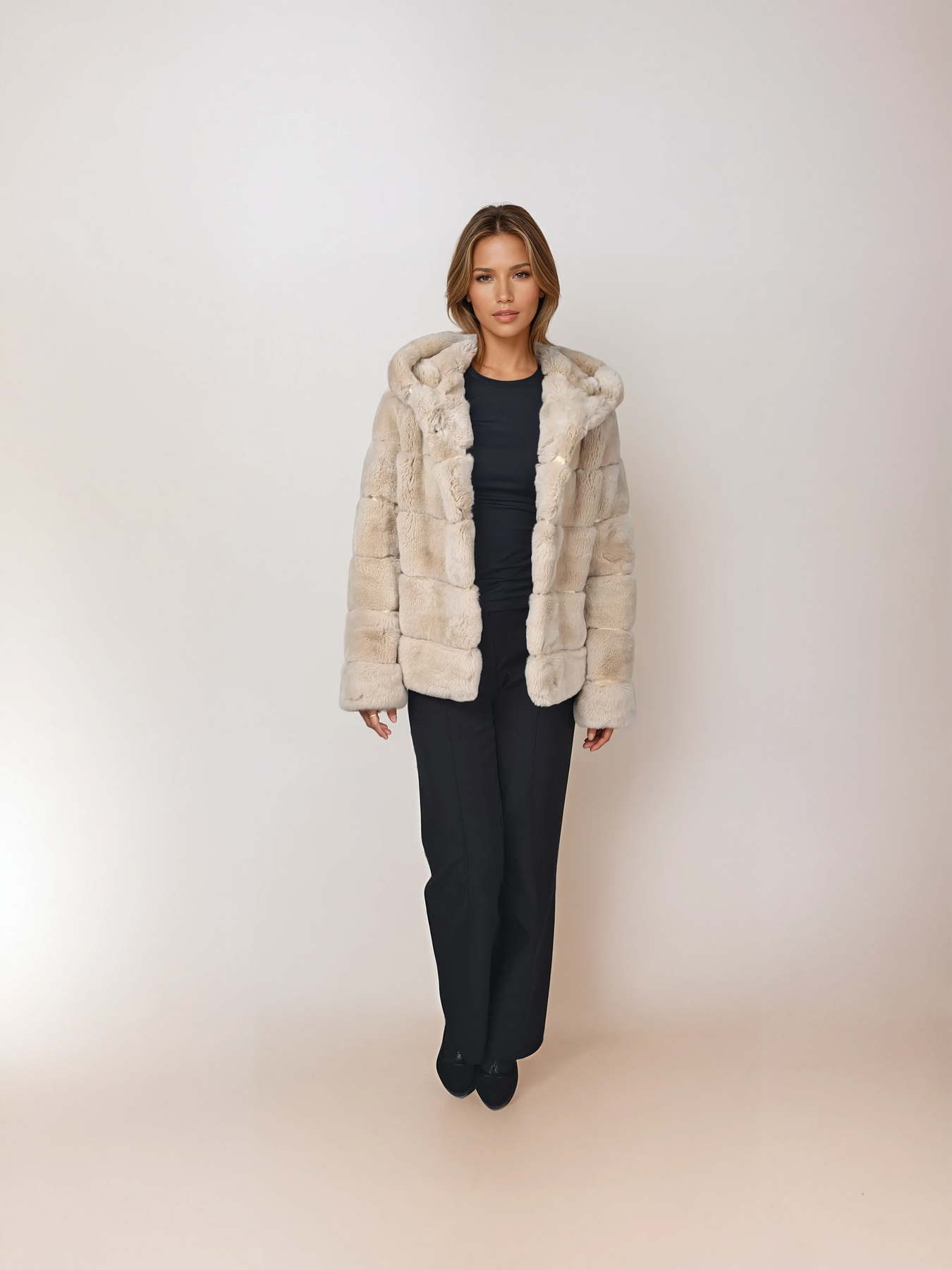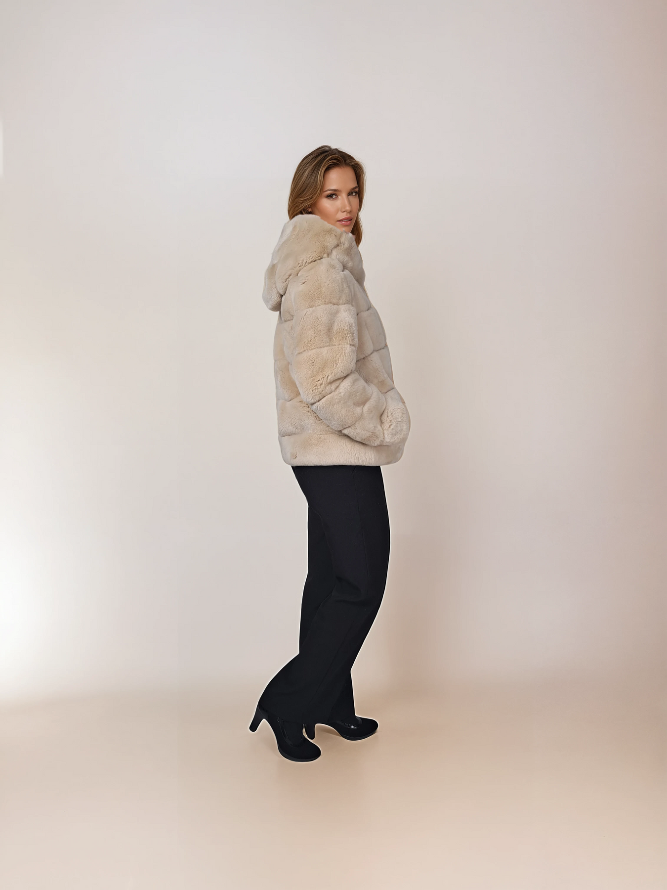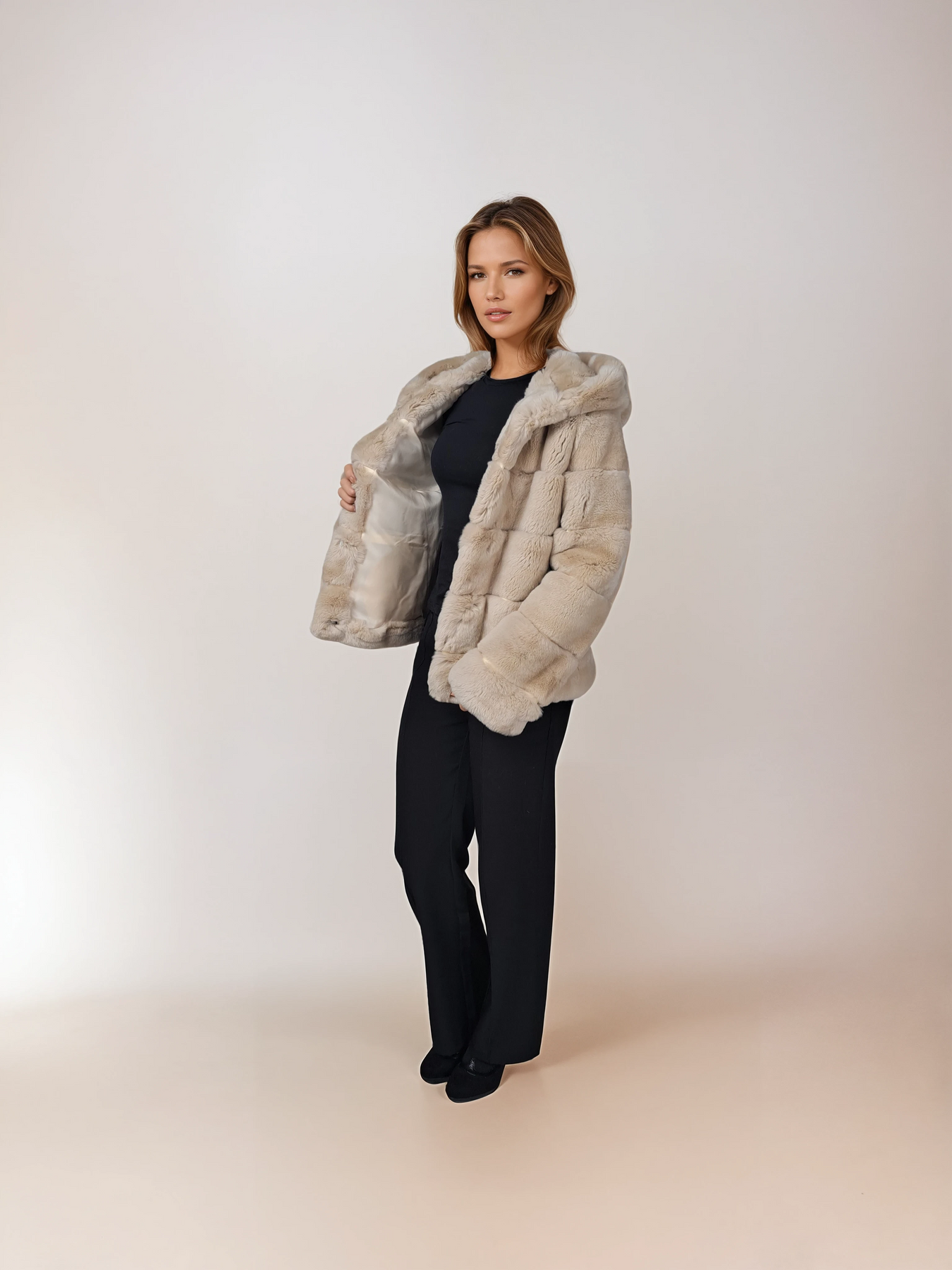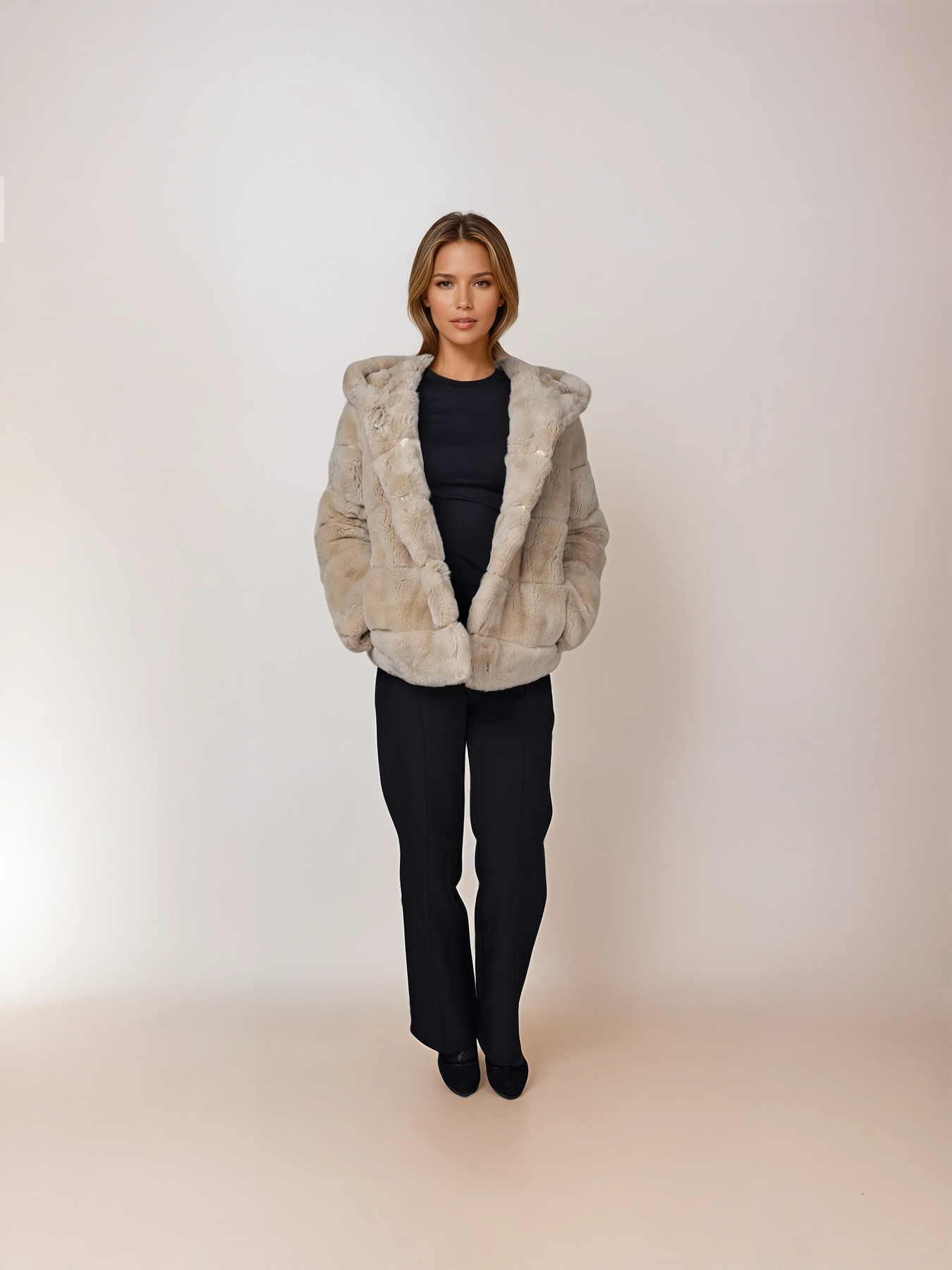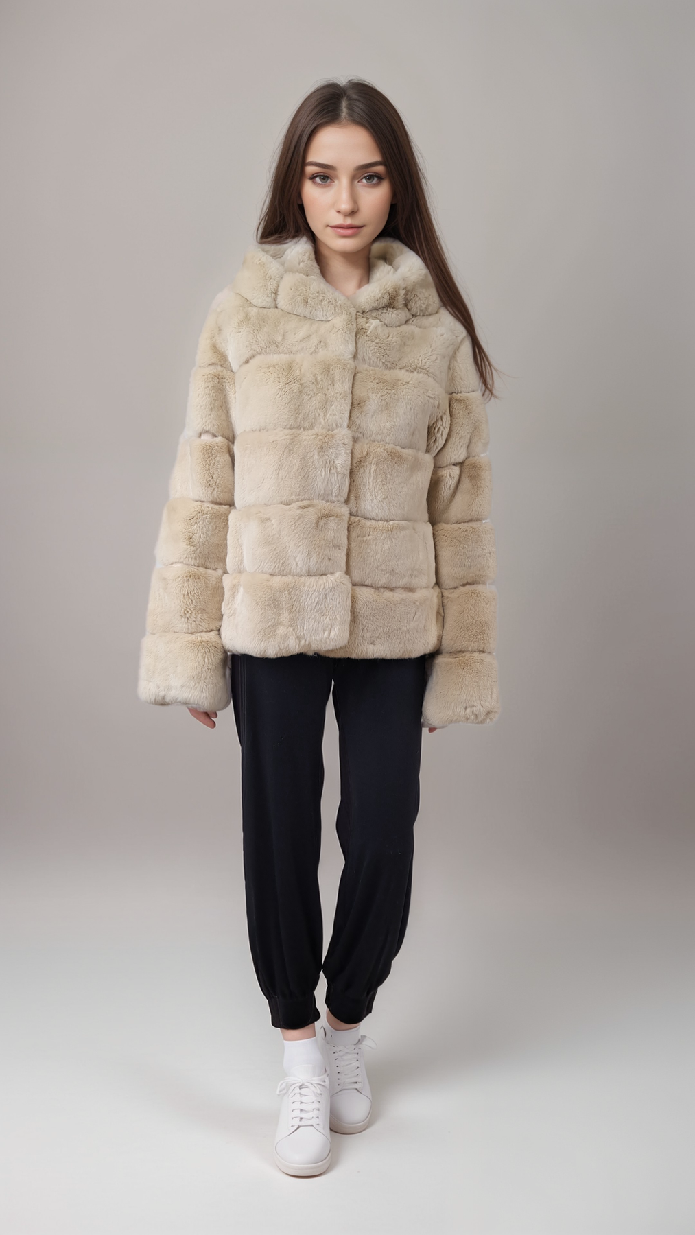 Stampe Denmark is introducing the Petrovski, 60 cm., hood Rex Coat for Women in cream – a perfect fusion of nicety, classic style, and sporty sophistication. Crafted from beautiful black rex rabbit fur, this short coat is designed to keep you warm throughout the winter season.