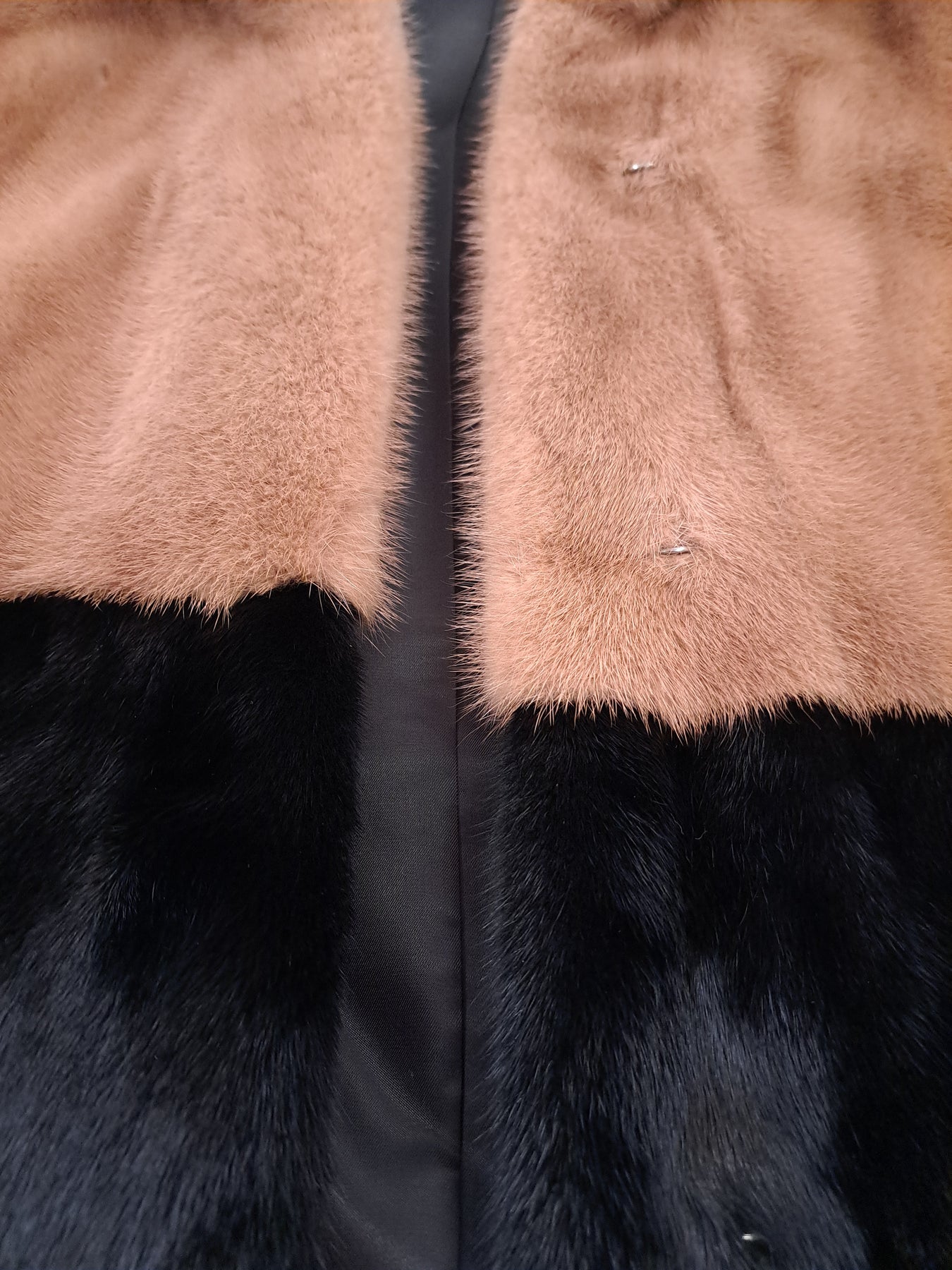 Løft din garderobe med Ganaia Black and Dust Rose Mink Coat – et mesterværk, der fanger essensen af sofistikering og forkælelse.