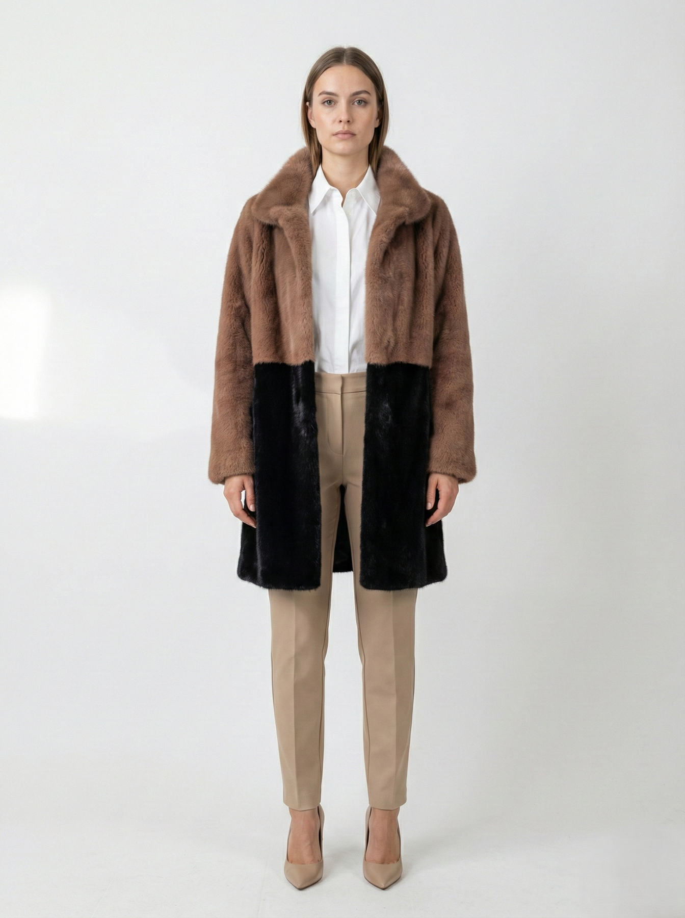 Forkæl dig selv med indbegrebet af luksus og sofistikering med Ganaia 85 cm. Krave mink frakke i sort og dust Rose. Denne udsøgte minkfrakke er et tidløst statement, der ubesværet kombinerer elegance med varme. Den er fremstillet af den fineste minkpels og omslutter dig i en kokon af blød blødhed, hvilket gør hver wear til en overdådig oplevelse.
