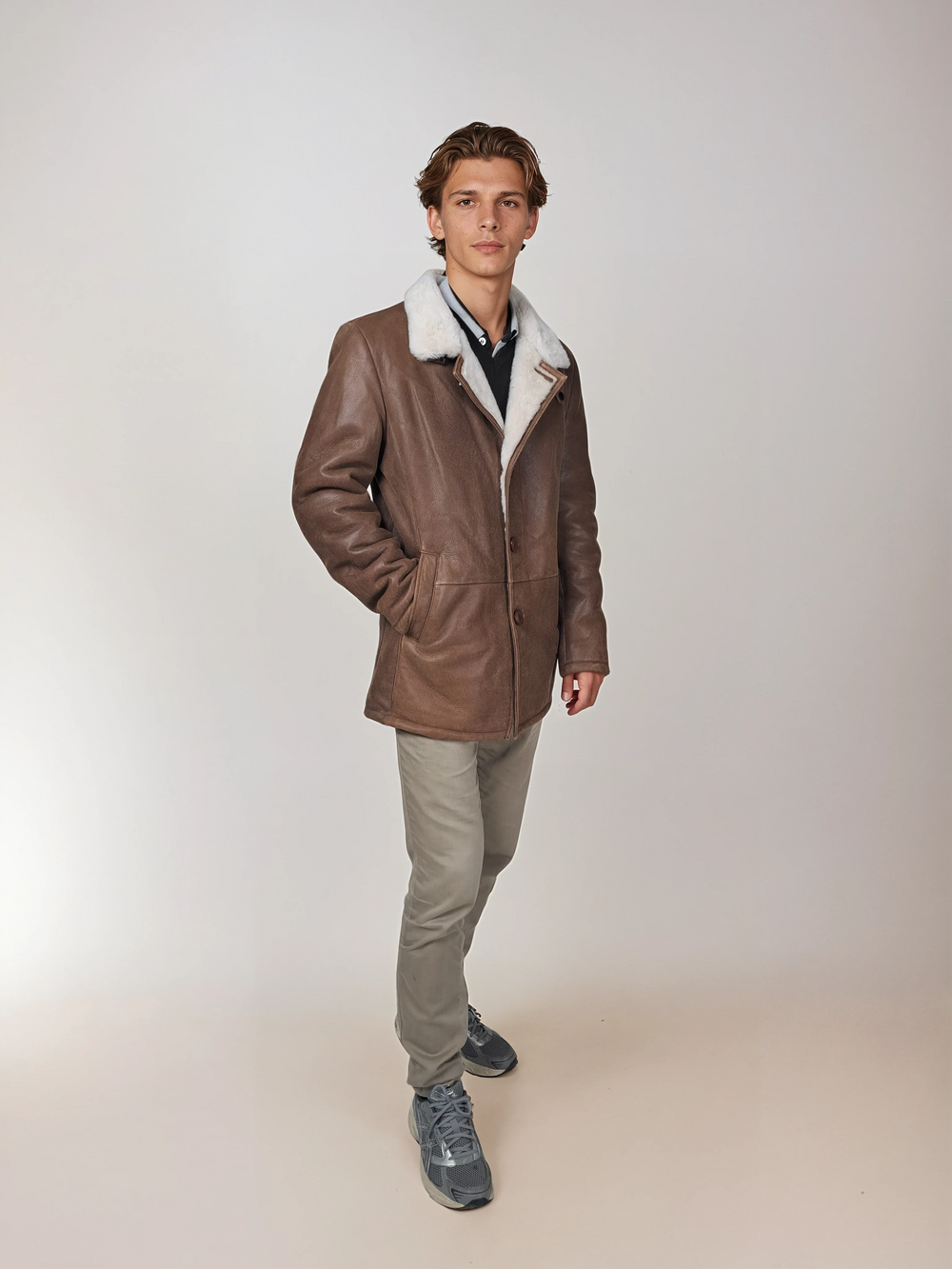 Cooper embodies intelligent design for the discerning man. This 80 cm jacket in cool lamb leather pairs a sharp whisky tone with a soft fur lining that delivers unexpected comfort beneath its polished exterior. The structured collar adds contemporary edge while maintaining timeless appeal. Smart tailoring meets tactile luxury—a refined piece that balances understated sophistication with practical warmth.