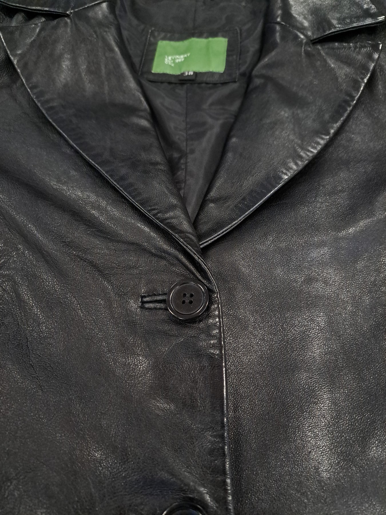 Erika is a refined lamb leather jacket crafted by Levinsky, designed for effortless elegance. The luxurious shiny finish catches light beautifully, while the supple lamb leather feels impossibly soft against the skin. At 95 cm in length, it hits at the hip for a flattering silhouette. The structured collar adds polish and presence. Lined with smooth polyester for comfort and ease of movement, this black jacket transitions seamlessly from day to evening. A timeless investment piece that embodies understated luxury.