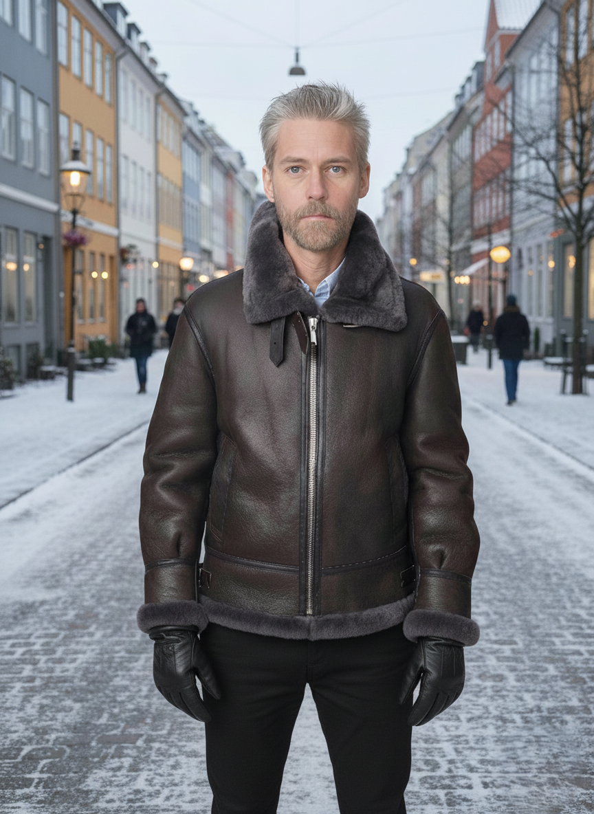 For kroppen din: Shearling -jakker tilbyr eksepsjonell varme og isolasjon på grunn av den tette ullen på den indre siden av jakken. Dette naturlige isolasjonslaget holder kroppen varm og beskyttet mot kulden, selv under tøffe værforhold. Skjærlingens pustende natur sikrer at kroppen din kan regulere temperatur og fuktighet, og gi en behagelig og hyggelig opplevelse uten å føle seg overopphetet eller klam.