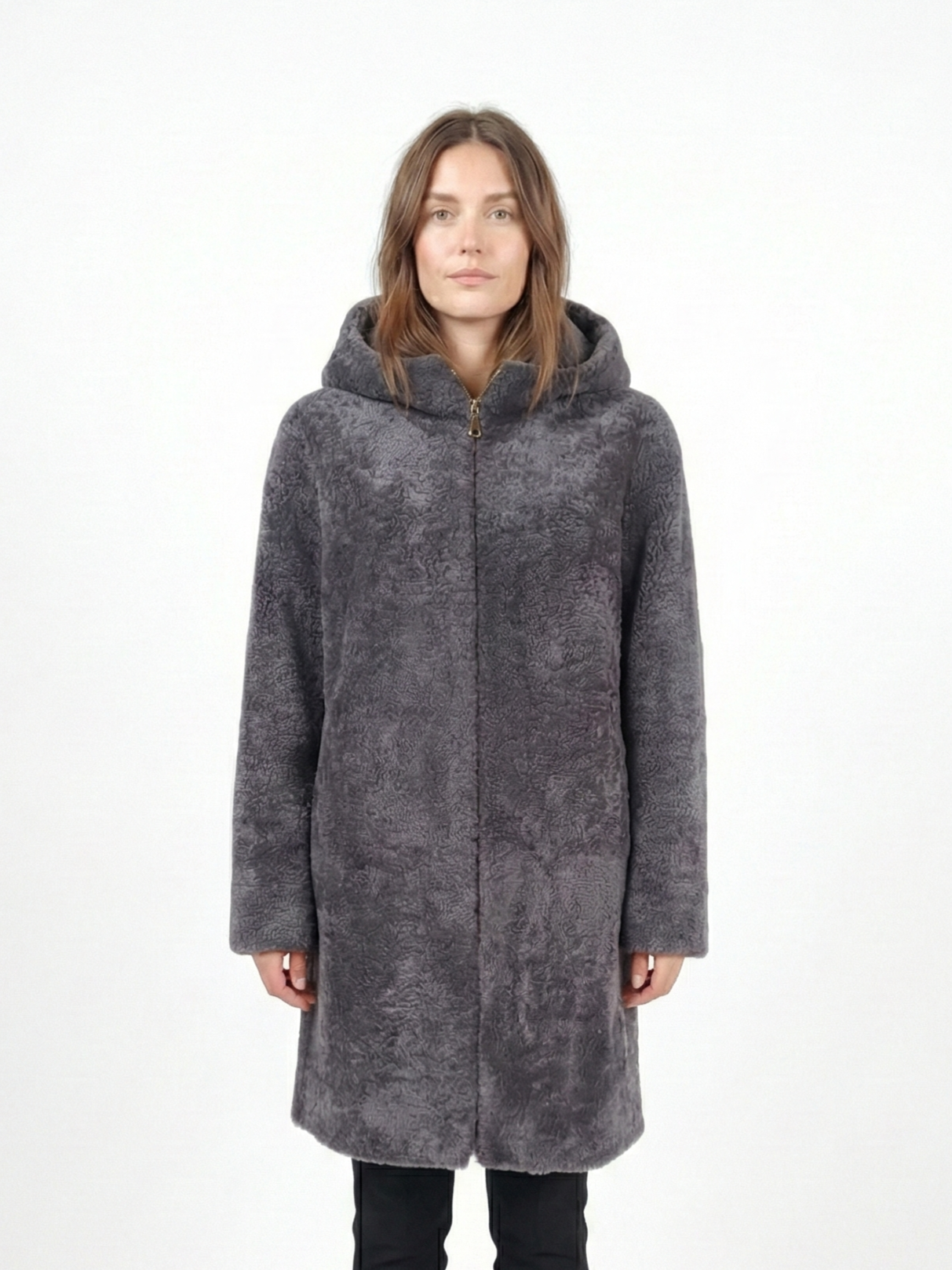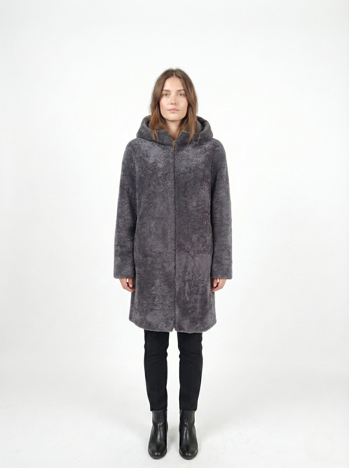 Zusammenfassend lässt sich sagen, dass diese Lammfelljacke mit Kapuze und robustem silbernen Reißverschluss eine schöne Mischung aus Eleganz und Haltbarkeit ist, die Ihnen dabei hilft, den Elementen mit Stil zu trotzen.