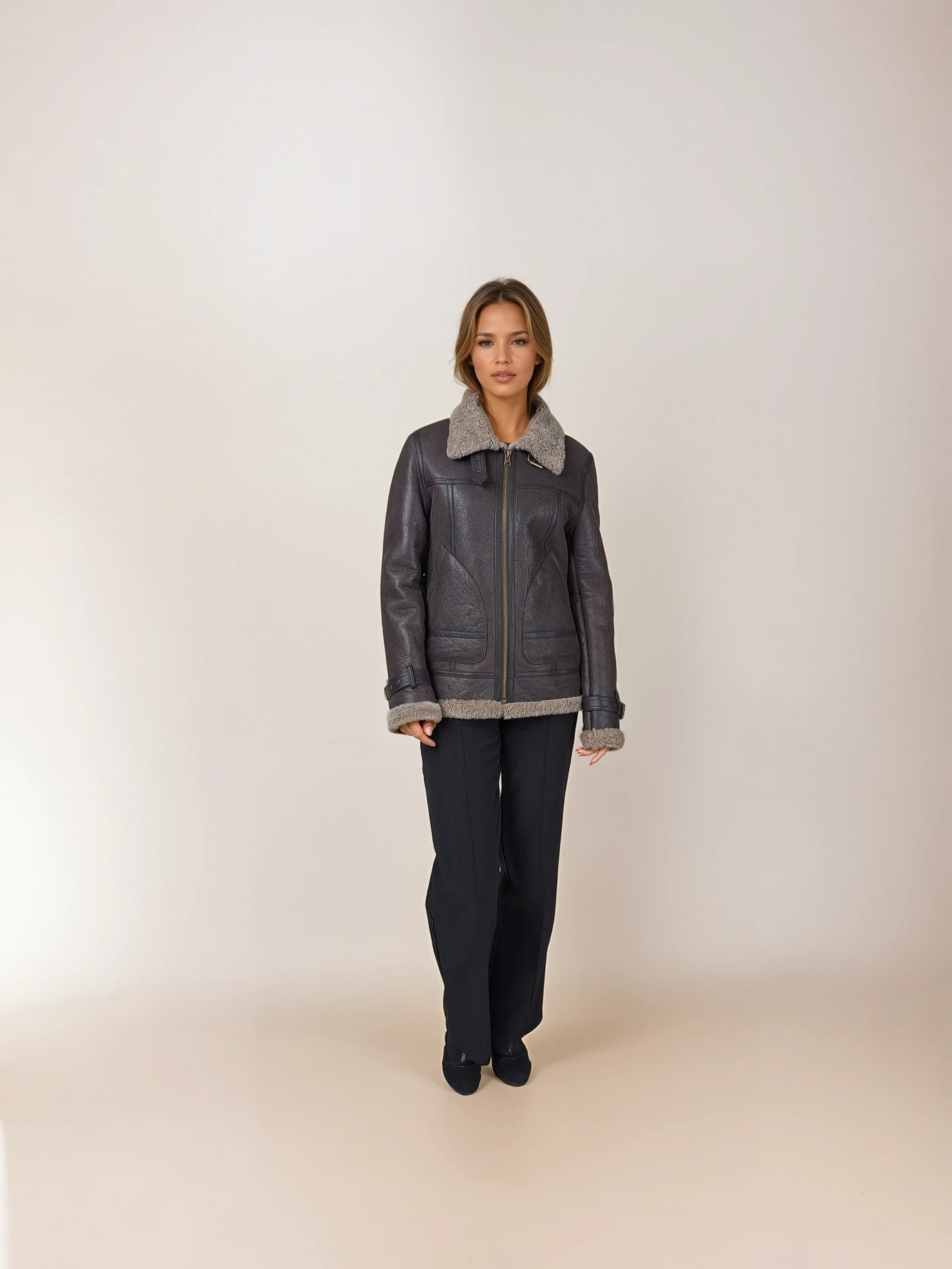 | Description | Bomber lamb jacket with zip and wool inside | ||||||||
