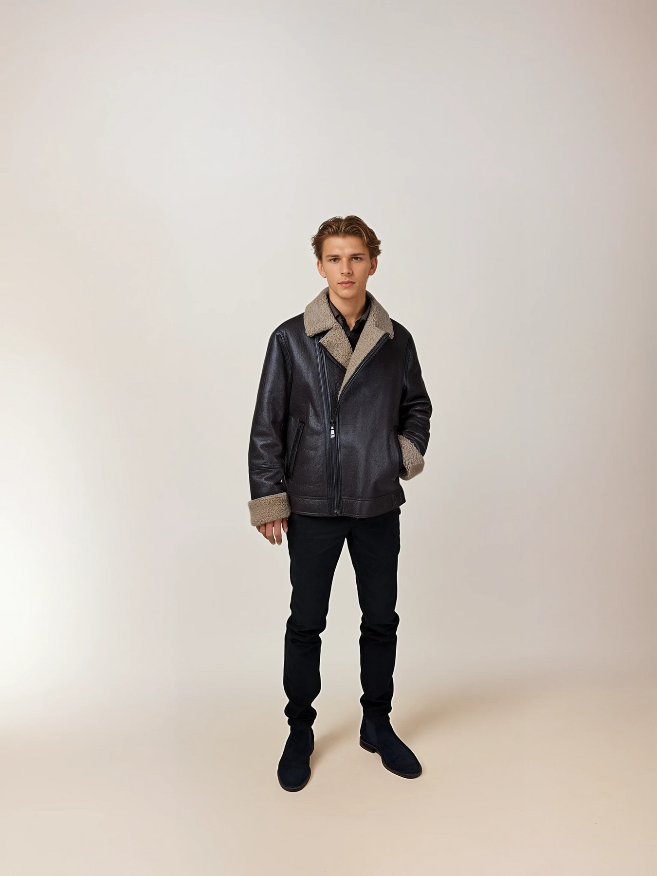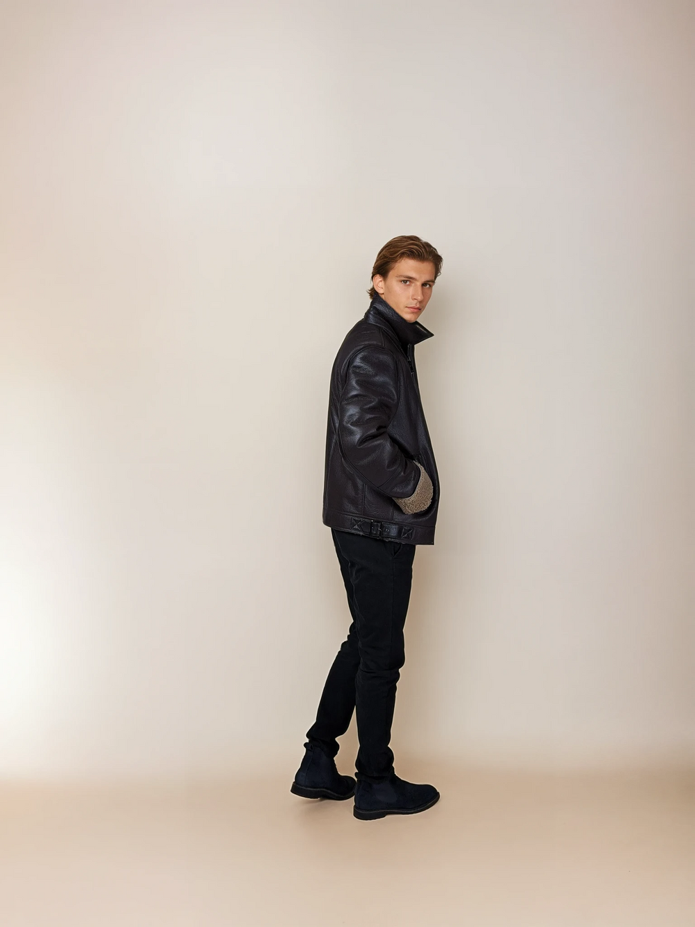 Introducing Hadley, the ultimate luxury for the modern man. This 68 cm brown lamb jacket boasts warm fur lining and functional pockets, including a hidden zippered compartment. Stay warm and stylish all season long with this exclusive piece.