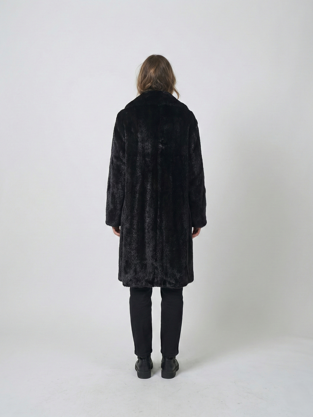 Irene-B er en klassisk minkpels i sort, designet af det anerkendte danske pelsfirma Levinsky. Denne 100 cm lange frakke fremstilles ved hjælp af den eksklusive "let out"-teknik, hvor mink skæres og sys sammen for at skabe en elegant, letflydende silhuet uden vægt. Kravet tilføjer raffinement og beskyttelse. Perfekt til den kvinde, der værdsætter tidløs luksus og håndværksmæssig præcision.