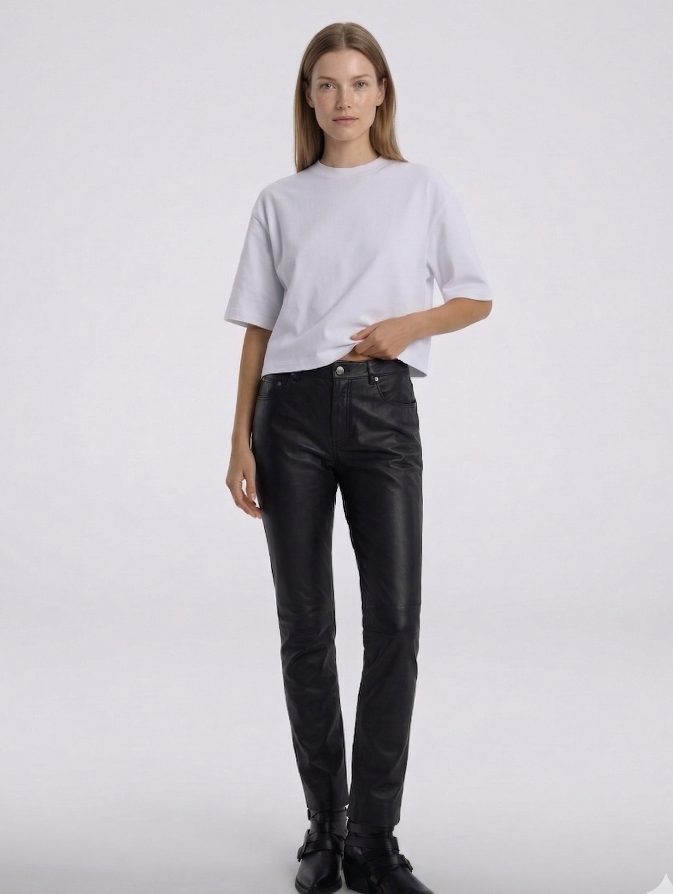 Jill Trouser-byxorna är tillverkade av premium lammnappaläder som är mjukt att ta på. Dess ursprungliga jeansform ger en smickrande passform med fickor fram och bak. Det perfekta plagget för både casual och formella looks.