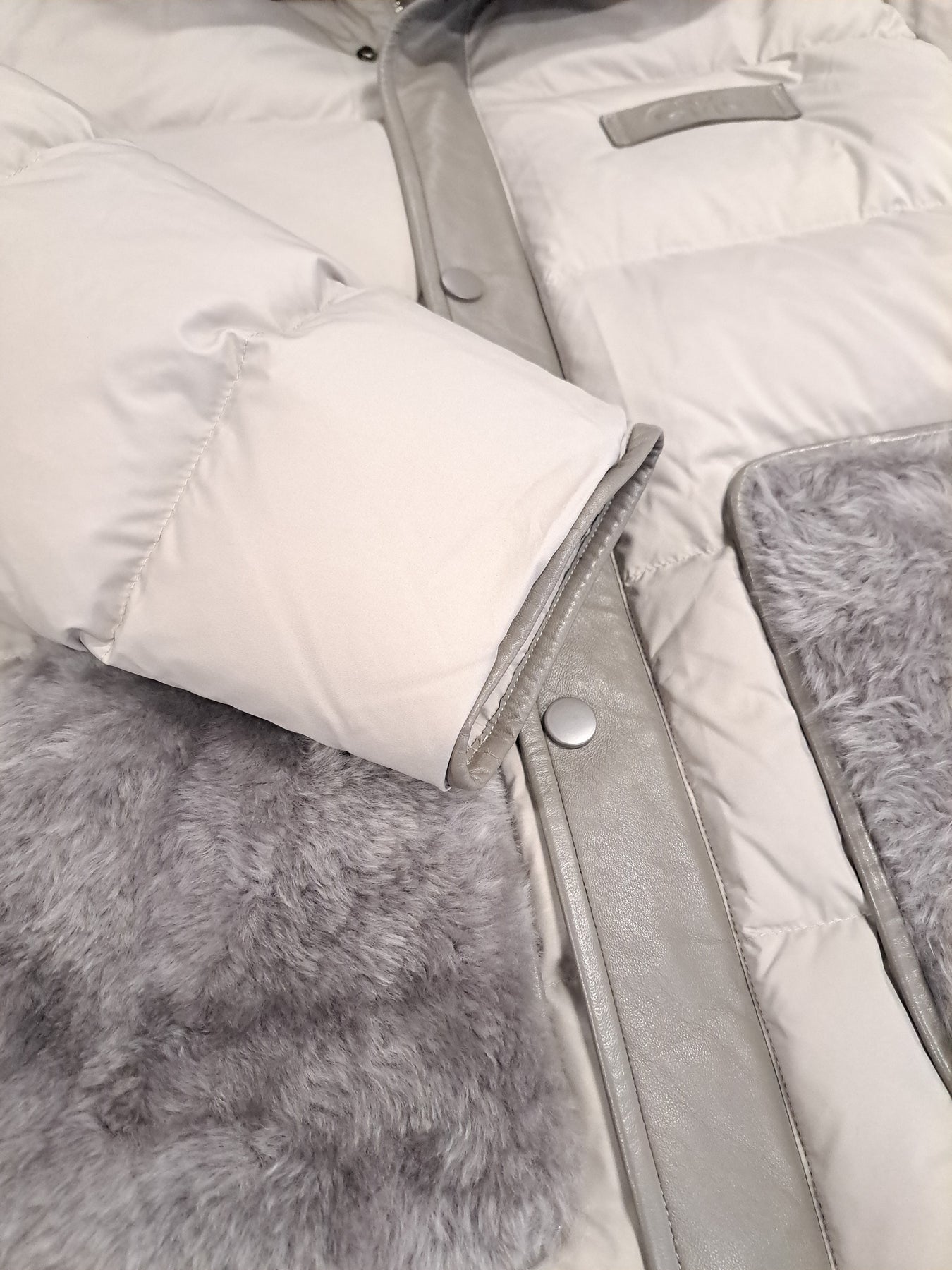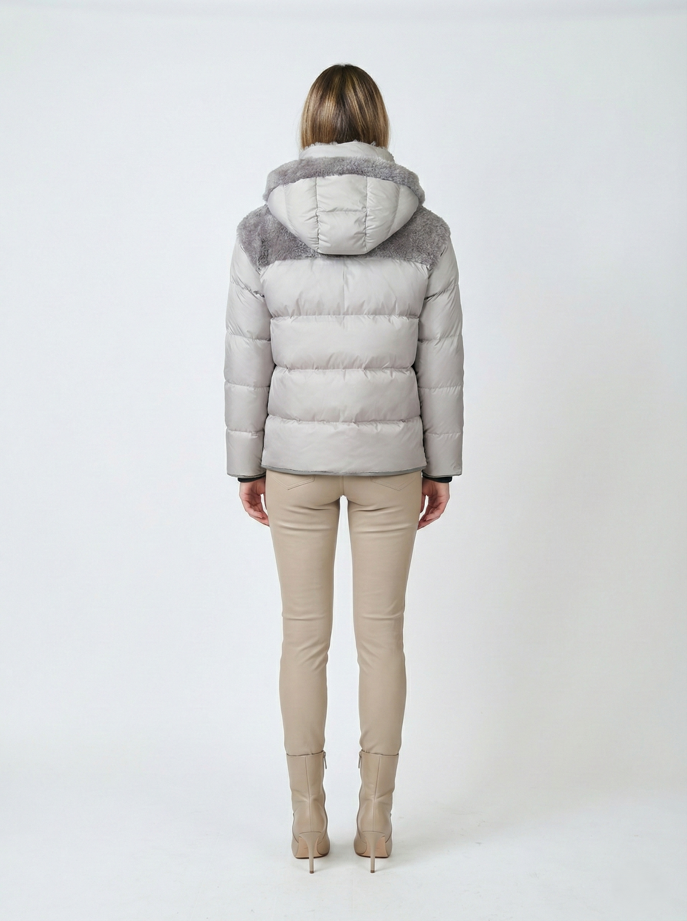 Meet your winter essential. The Jovina down jacket delivers warmth without bulk, featuring premium down insulation perfect for cold Danish winters. Lamb leather pockets and hood collar add refined detail and durability, while the 68 cm length provides ideal coverage. A sophisticated grey silhouette that pairs with everything, built to keep you comfortable season after season.